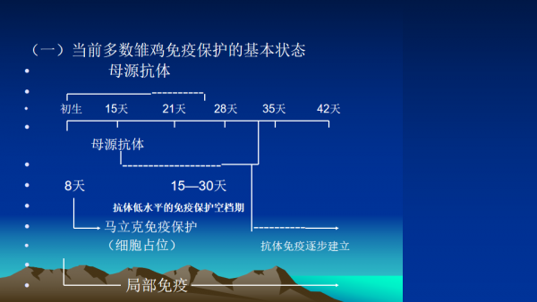 1. 母源抗體是長(zhǎng)期自然進(jìn)化中母體為下一代雛雞提供針對(duì)性很強(qiáng)的主要抗病能力。