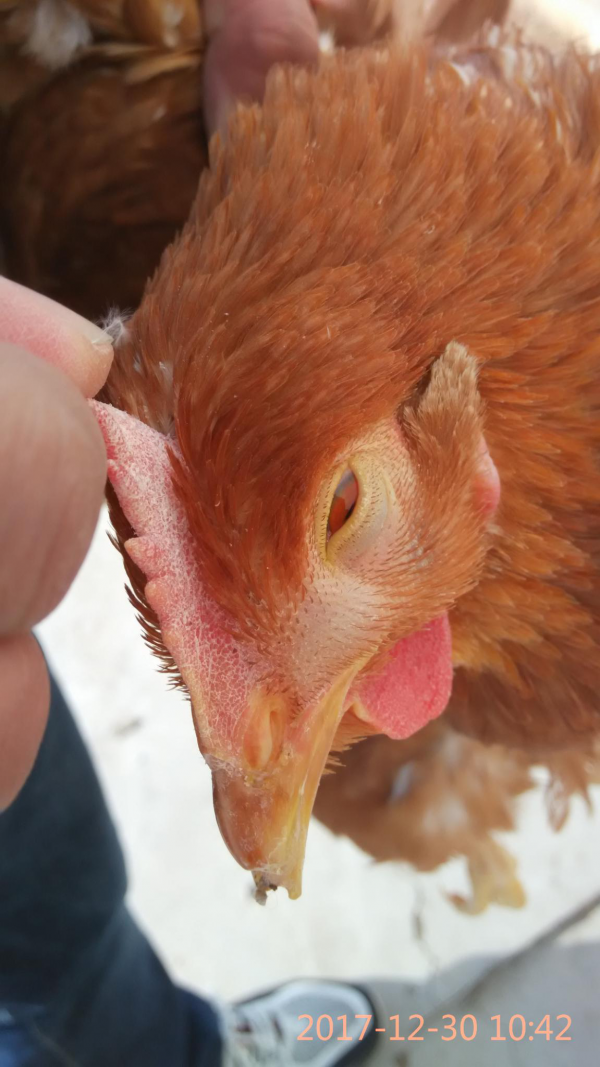 IC在雞育成階段和產(chǎn)蛋階段高發(fā),各個(gè)品種雞對(duì)Apg都易感,尤其是8-16周齡階段育成及產(chǎn)蛋雞群。老齡雞感染較為嚴(yán)重。發(fā)病初期主要表現(xiàn)為采食量和飲水量輕微下降,打噴嚏,流出的鼻液先為清亮色,三到四天后轉(zhuǎn)為白色膿性鼻涕,并伴著流淚,眼腫大,嚴(yán)重時(shí)整個(gè)頭部腫大,眼睛內(nèi)陷,部分蛋雞眼睛失明。IC的一個(gè)特征是潛伏期短,接種培養(yǎng)物或分泌物后24-48h內(nèi)即可發(fā)病。